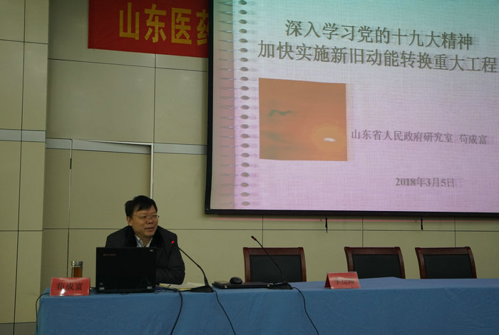 培訓過程中,山東省人民政府政策研究室黨組成員、副主任茍成富做了《深入學習黨的十九大精神,加快實施新舊動能轉換重大工程》的講座,為全體教職員工從國家、山東省、職業教育三個層面分析了當前政治形勢,對山東省實施新舊動能轉換重大工程的意義作了全新的解讀,為學院下一步搶抓機遇提供了新的思路。