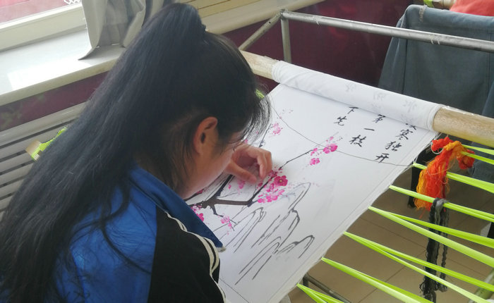 學(xué)生正在進(jìn)行手工刺繡