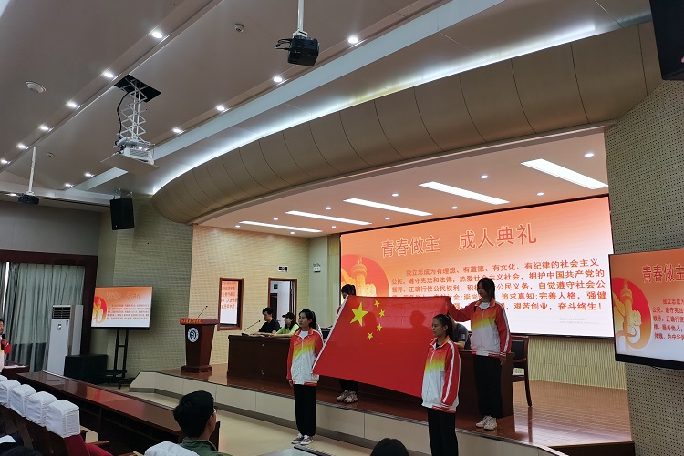 隨后,新老團員代表分別發言,表達自己積極向團組織靠攏并在同學中起模范帶頭作用的決心和勇氣。在十八歲成人宣誓儀式上,年滿18歲的學生代表面對國旗莊嚴宣誓。隨后,學生代表發言,號召大家正確行使公民權利,積極履行公民義務,自覺遵守社會公德。