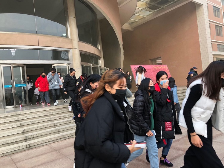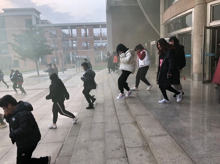 整個演練過程中,學(xué)生們沉著冷靜、應(yīng)對得當(dāng),在老師們的引導(dǎo)下,手持濕毛巾緊張而有序地快速從教學(xué)樓撤離到規(guī)定的安全地帶足球場。