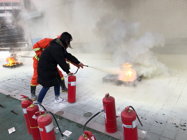 演習(xí)結(jié)束后學(xué)院微型消防站應(yīng)急小隊(duì)隊(duì)員傳授師生們學(xué)習(xí)滅火器的正確使用方法。學(xué)生代表、教師代表現(xiàn)場體驗(yàn)了滅火器的使用方法。