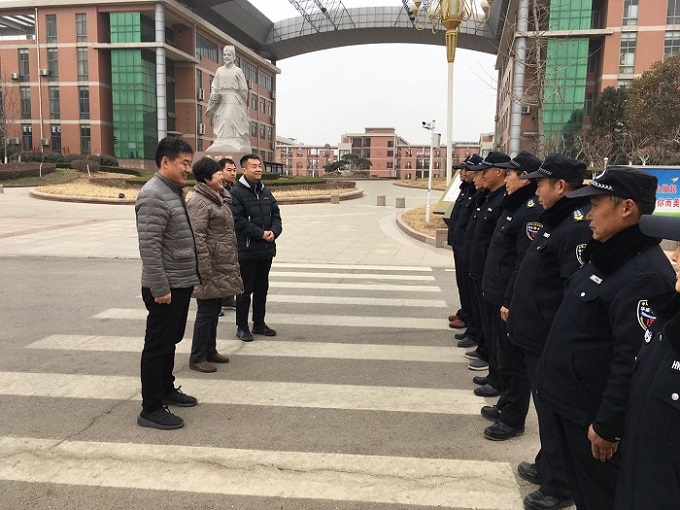 2月3日上午,在新春佳節來臨之際,院長李松濤、副院長楊挺親切慰問了春節期間依然堅守崗位的值班人員,代表學校向他們送去了節日的問候和新春的祝福,學院保衛處負責同志陪同活動。