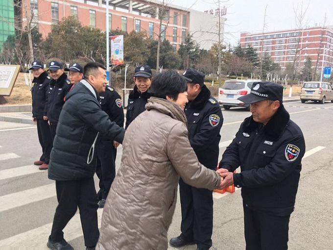 學院領導來到門衛值班室、校園110報警中心等值班點,熱情地與值班人員握手,并為值班人員送上慰問和祝福,對大家為學校的安全穩定作出的積極貢獻表示感謝。