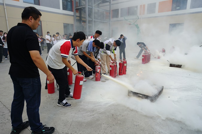 下午2點,隨著警報聲的驟然響起,防火、防震疏散逃生演練正式開始。學生們按照應急演練制定好的疏散路線,在老師的引導下迅速有序撤離至籃球場,學生到達安全區域后,各班迅速清點人數,逐級匯報。整個演練過程緊張有序,師生們表現出了良好的應急反應能力和自救互救意識。隨后,學院保衛處處長夏廣勇還現場講解了手提式滅火器的使用方法,參加演練的師生代表進行了現場操作,掌握了滅火器的使用要領,更好的積累了滅火實戰經驗。
