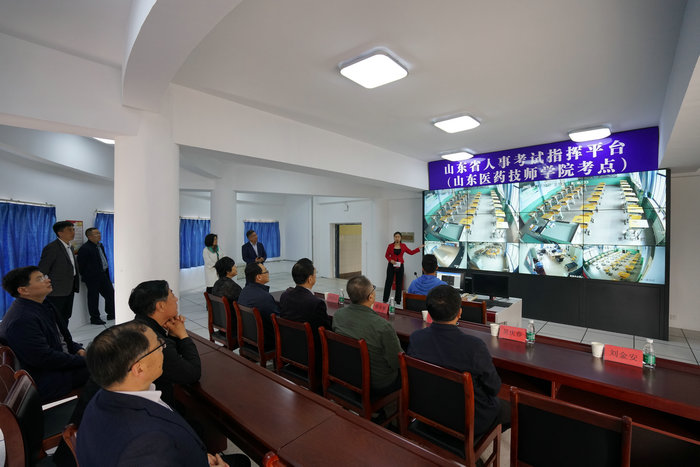 為健全人事考試安全管理機(jī)制,進(jìn)一步夯實(shí)人事考試安全工作基礎(chǔ),加強(qiáng)對考試組織方式的規(guī)范管理,4月12日,人社部人事考試中心黨委書記趙樹國、考試中心信息處處長吳慶春一行來我院調(diào)研標(biāo)準(zhǔn)化考場建設(shè)和人事考試安全管理工作。泰安市人民政府副市長鞠向群、人力資源和社會保障局局長蔣永斌、副局長劉金安、山東省人社廳考試中心副主任張慶山、山東省考試中心考務(wù)二科科長孫厚慶、學(xué)院領(lǐng)導(dǎo)李啟國、李松濤、陳世偉以及相關(guān)部門負(fù)責(zé)同志陪同。