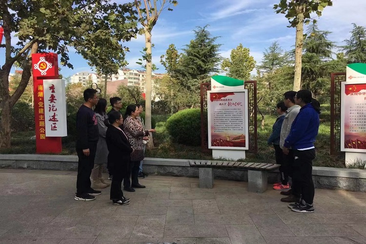 當天下午,黨員們進入泰安市首個黨建主題公園——南湖黨建文化主題公園進行學習教育。全體黨員干部在主題展示區核心雕塑下重溫了入黨誓詞,進一步堅定了對黨的忠誠和信念。隨后,參觀了黨建公園主題展示、重要論述、黨史軌跡、愛國教育、紅色步道、務實清廉、美好愿景等7個展示區的文化景觀,集中學習了習近平新時代中國特色社會主義思想和黨的十九大精神、黨的建設、黨的歷史、紅色文化、革命傳統、先模人物和中國夢等宣傳內容。