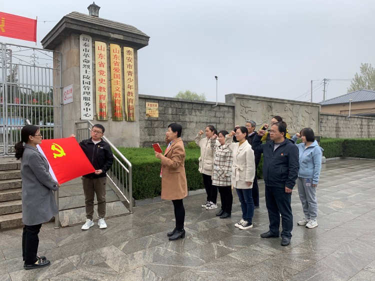 最后,在烈士陵園門口,黨員們面對黨旗,右手握拳,在支部書記高秀清的帶領下,重溫入黨誓詞,重憶入黨初心,牢記為人民服務的初心使命。
