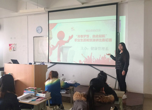 為豐富校園文化,加強同學們的勤奮意識,督促同學們做好職業生涯規劃,同時選取優秀選手代表我系參加學院第一屆職業生涯規劃演講比賽,健康管理系于11月29日在信息樓322教室舉辦職業生涯規劃演講比賽。各班均推選優秀選手參加此次比賽。
