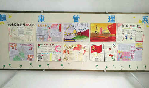 為弘揚(yáng)長征精神,提高同學(xué)們的愛國、愛黨意識,珍惜當(dāng)今美好生活,健康管理系于11月18日開展“紀(jì)念長征勝利80周年”手抄報(bào)比賽活動。