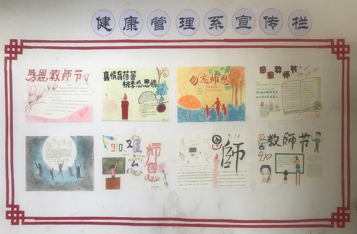 為了慶祝第34個教師節(jié),發(fā)揚尊師重教的傳統(tǒng),時刻保持著一顆感恩之心,健康管理系于9月4日至9月10日舉辦“尊師重教·感恩老師”主題手抄報比賽。