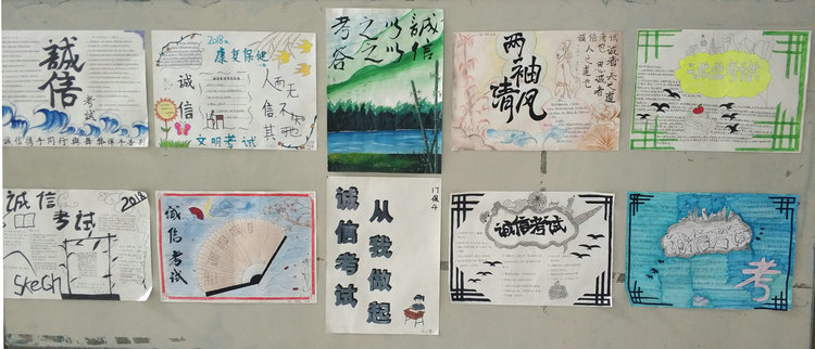 在各班班主任的帶領(lǐng)下,同學(xué)們認真搜集材料,將《學(xué)生手冊》考試舞弊處罰等內(nèi)容,通過手中的畫筆形象生動的呈現(xiàn)在一幅幅手抄報中,表達了對期末復(fù)習(xí)的信心和誠信應(yīng)考決心,并向所有人發(fā)出倡議,倡議大家積極復(fù)習(xí)、誠信應(yīng)考。本次活動,共征集作品56幅,其中一等獎5幅、二等獎5幅、三等獎10幅。