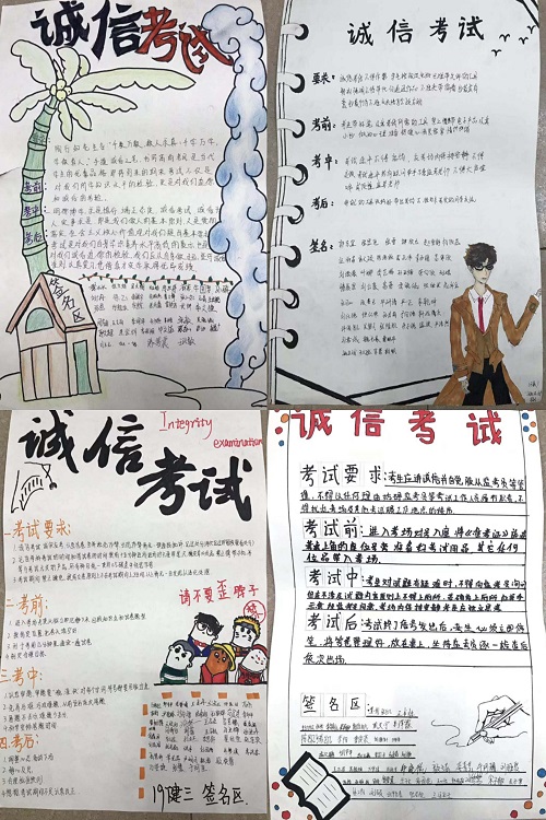 誠信考試是優化教書育人環節的必要條件。此次手抄報評比活動使同學們認識到了誠信考試的重要性并進一步促進了學校良好考風、學風的形成。