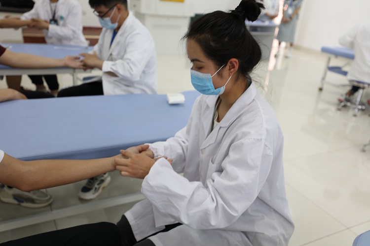 參加本項(xiàng)目比賽的選手涵蓋了四個(gè)年級(jí),二百多名選手隨機(jī)編號(hào),分別在兩個(gè)實(shí)訓(xùn)室完成操作,并由兩名專業(yè)老師現(xiàn)場(chǎng)打分。比賽主要考察選手對(duì)小兒推拿2選取、手法操作的掌握程度。賽中,選手們?nèi)⊙ň珳?zhǔn)、手法到位,展現(xiàn)了扎實(shí)的專業(yè)技能,經(jīng)過(guò)激烈角逐,最終45位選手脫穎而出,進(jìn)入復(fù)賽。