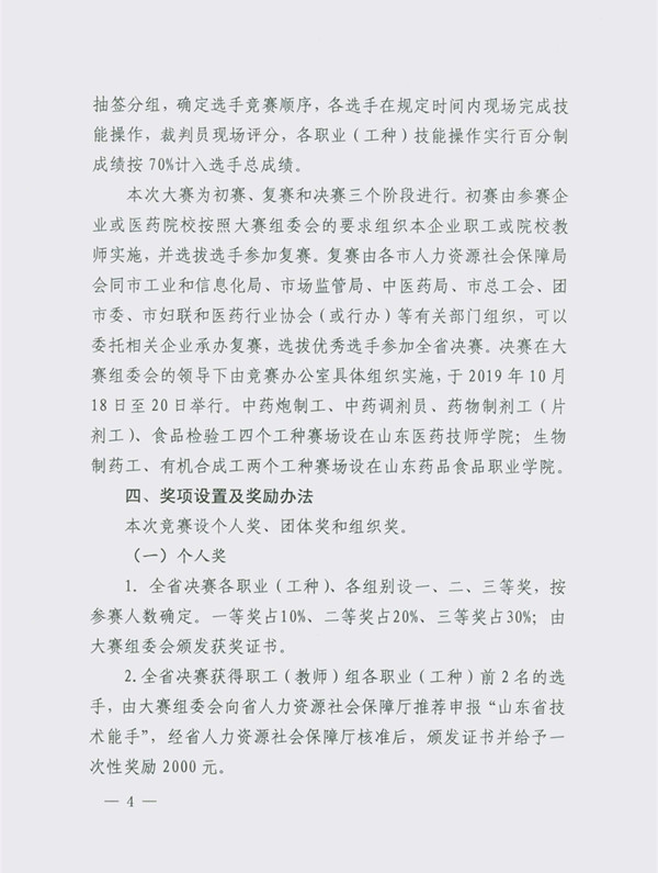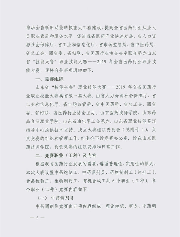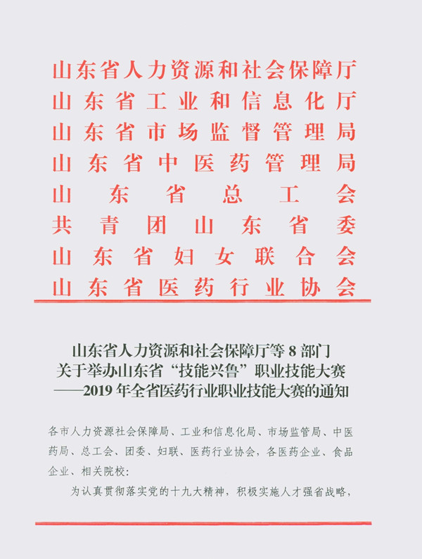 附件:山東省”技能興魯“職業技能大賽--2019年全省醫藥行業職業技能大賽的通知