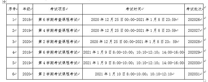 具體各專業(yè)、層次及課程考試時間安排表參考附件