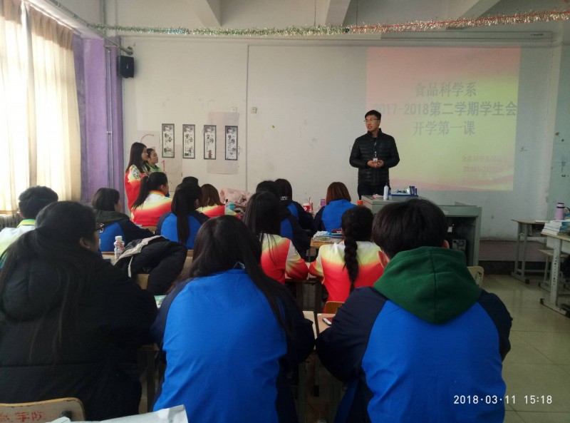 會議開始,系學(xué)生會主席團(tuán)及各部部長分別總結(jié)了上學(xué)期的各項工作,并對本學(xué)期工作進(jìn)行了規(guī)劃。隨后,師生之間針對系內(nèi)及班級學(xué)生管理、怎樣更好地為同學(xué)們服務(wù)、系部及班級文化建設(shè)等問題進(jìn)行了交流。最后,安主任從學(xué)生會性質(zhì)、宗旨、入會初心、認(rèn)識自己、加強(qiáng)自身素質(zhì)等五個方面給大家上了生動勵志的“開學(xué)第一課”,肯定了大家以往的成績并鼓勵大家新學(xué)期從自身做起,注重自我綜合能力的提升,為其他同學(xué)樹立起良好的榜樣,不斷增強(qiáng)團(tuán)隊意識,提高集體榮譽(yù)感。(食品科學(xué)系)