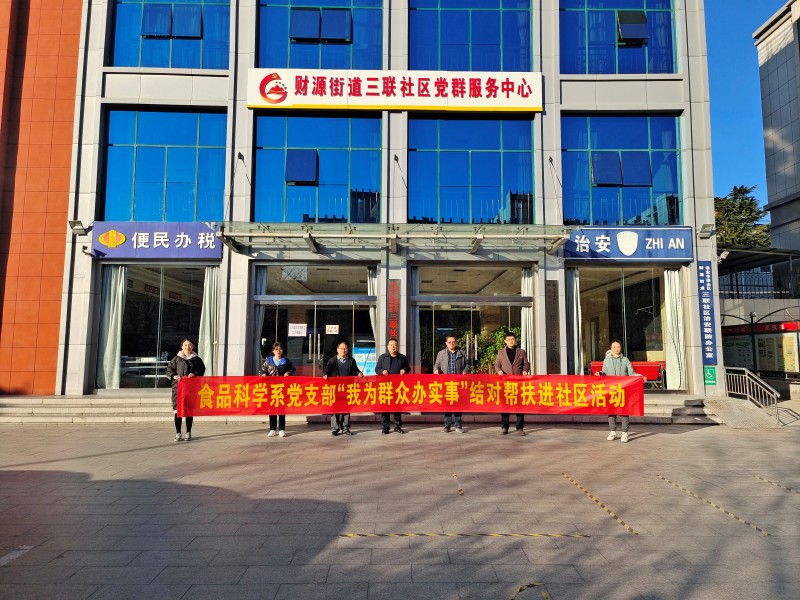 為深入推進黨史學習教育,扎實開展“我為群眾辦實事”實踐活動,充分發揮基層黨組織的戰斗堡壘作用和黨員先鋒模范作用,12月1日,食品科學系黨支部到財源街道三聯社區,開展“我為群眾辦實事”結對幫扶主題黨日活動。