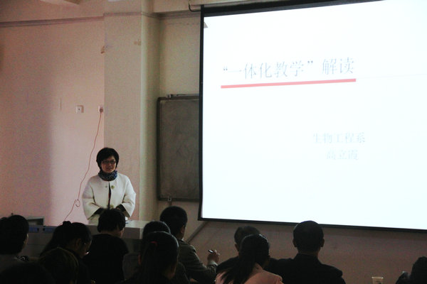 高立霞主任首先介紹了一體化與傳統(tǒng)教學(xué)的不同,然后全面地介紹了什么是一體化課程、一體化課程標(biāo)準(zhǔn)的開發(fā)流程、一體化教學(xué)的組織與實(shí)施、一體化教學(xué)模式及方法以及一體化教學(xué)的保障條件,最后介紹了生物工程系本學(xué)期的課改計(jì)劃,重點(diǎn)實(shí)行推門聽課制度、骨干教師觀摩課等活動,并提出了對教師進(jìn)行評價(jià)應(yīng)該從教學(xué)能力、與企業(yè)溝通能力、課程開發(fā)能力、參賽獲獎能力以及指導(dǎo)學(xué)生的能力等各方面進(jìn)行。