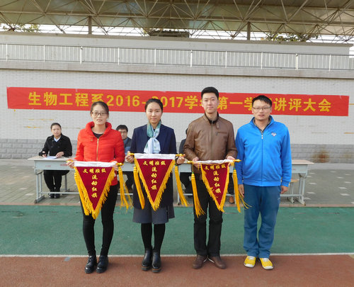 11月4日13:00,生物工程系本學期第一次學生工作講評大會在學院操場召開。會議對文明班級、文明宿舍以及先進個人進行了表彰,并為文明班級頒發流動紅旗,生物工程系各位主任為其它獲獎集體及個人頒獎。此次講評大會進一步形成了爭先創優的氛圍,為生物工程系全體師生在接下來的學習和工作中取得更好的成績營造了良好的氛圍。(生物工程系)