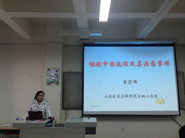 報告會由曹宏偉老師主講,她結合泰安市科學技術局一般科技發展計劃介紹了科研課題申報的一般流程、選題的調研,詳細說明了填寫項目申請書時應注意的問題及申報的技巧。最后高立霞主任對此次報告會給予高度評價,對青年教師提出殷切期望,鼓勵我系青年教師參與科研工作,積極主動申報相關科研項目,希望通過此次報告會推動我系科研工作再上新臺階。