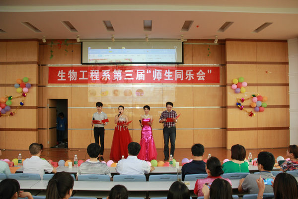為豐富學(xué)生的課余文化生活,促進(jìn)師生間的交流,生物工程系于2015年6月13日下午在信息中心二樓階梯教室舉辦了生物工程系第三屆“師生同樂(lè)會(huì)”。學(xué)院黨委書(shū)記曹體和、院長(zhǎng)李松濤、黨委副書(shū)記李元富、紀(jì)委書(shū)記劉建升、教務(wù)處處長(zhǎng)高立霞、學(xué)工部部長(zhǎng)黃鵬、生物工程系主任孔青、生物工程系部分教師及學(xué)生參加了此次活動(dòng)。