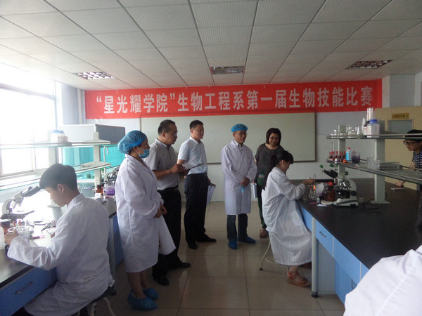 2015年6月17日下午2:30,生物工程系第一屆“星光耀學院”生物技能競賽在實訓中心D樓四樓的微生物實驗室及組織培養室順利舉行。學院紀委書記劉建升、教務處高立霞、培訓處張含波、實訓中心李華斌及吳海峰擔任評委,生物工程系部分師生現場觀摩了比賽。
