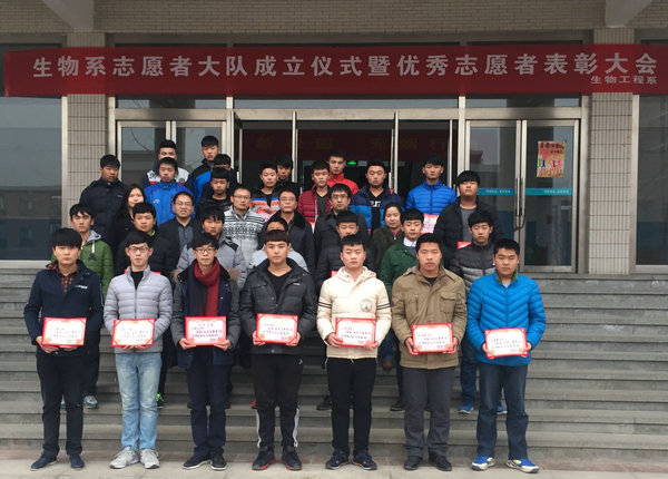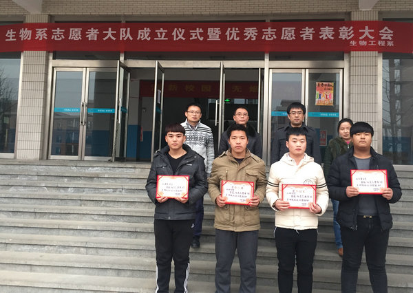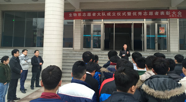 為響應(yīng)學(xué)院“關(guān)愛學(xué)生·尊重教師”主題教育活動(dòng)的號(hào)召,生物工程系于2015年12月7日下午在信息中心前舉行了志愿者服務(wù)隊(duì)成立儀式暨優(yōu)秀志愿者表彰大會(huì)。出席本次會(huì)議的領(lǐng)導(dǎo)有學(xué)院紀(jì)委書記劉建升、學(xué)院團(tuán)委書記黃鵬、生物工程系主任以及系團(tuán)總支書記。