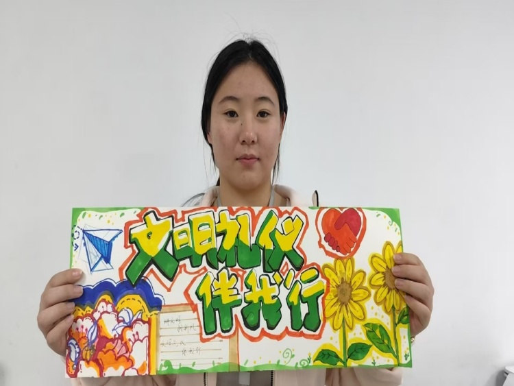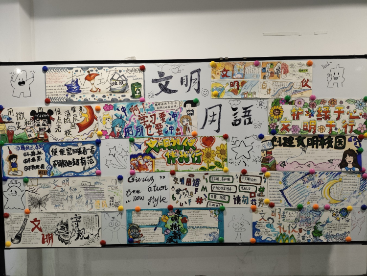 會后,同學們充分發揮藝術才能和想象力,開展文明標語繪制活動。他們有的用畫筆勾勒出美麗校園的場景,旁邊配上“文明一小步,校園美十分”的標語;有的則以簡潔的線條和醒目的字體寫下“輕聲細語,展現文明風度”。活動結束后,大家將飽含心意的文明標語張貼到宣傳欄,讓文明禮儀的氣息在校園內蔓延。