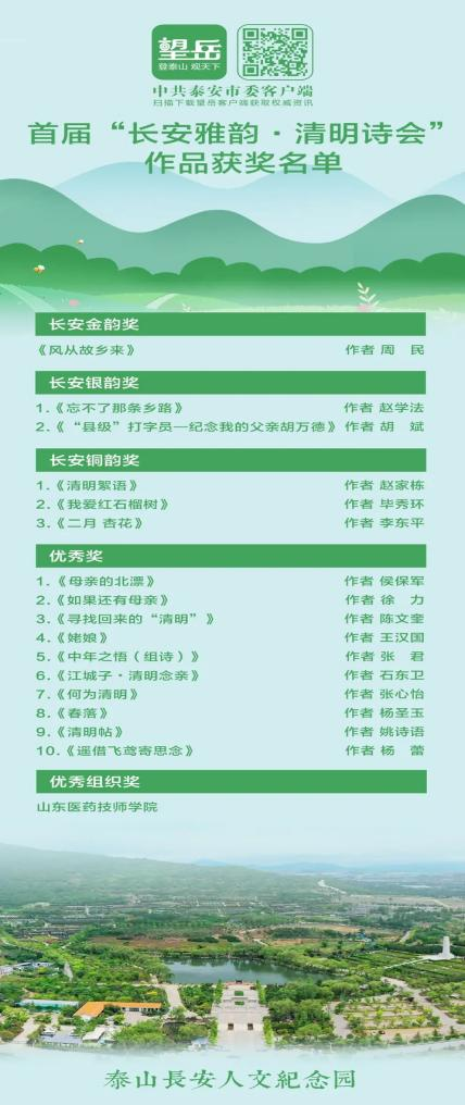 4月20日上午,由泰安日報(bào)社、望岳客戶端與泰山長安人文紀(jì)念園聯(lián)合舉辦的“長安雅韻·清明詩會(huì)”頒獎(jiǎng)儀式在泰山長安人文紀(jì)念園圓滿落幕。本次征文活動(dòng)以清明時(shí)節(jié)為載體,通過詩詞散文征集,致敬傳統(tǒng)文化、抒發(fā)生命情懷。自活動(dòng)啟動(dòng)以來,鳳天路校區(qū)廣大學(xué)子熱情參與,提交了眾多飽含深情的詩詞與散文作品。