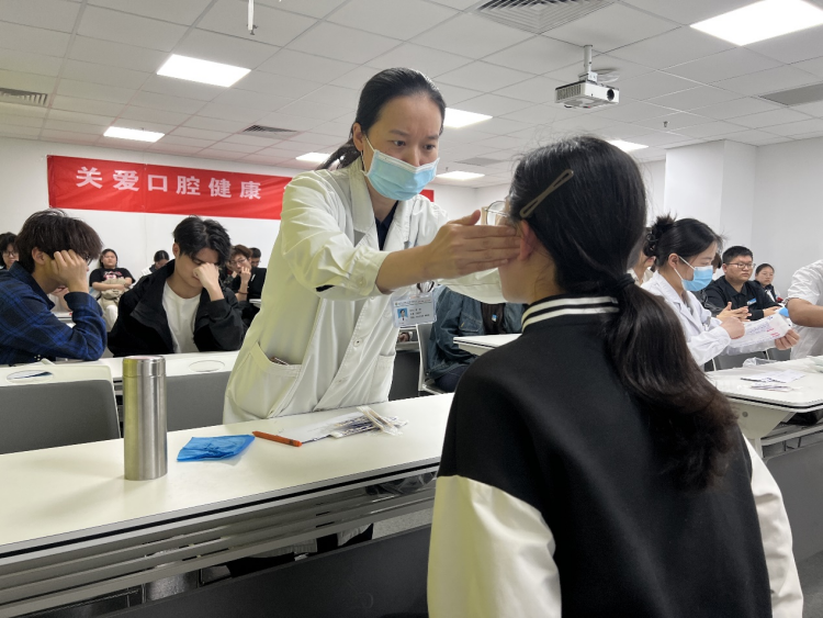活動現場,前來咨詢和問診的師生絡繹不絕。第二附屬醫院的姜娟、宗菲等口腔科醫生耐心細致地為就診的師生進行口腔健康檢查,詢問牙齒日常狀況,分析口腔問題,進行一對一的專業解答,為大家提供了切實可行的口腔保健指導和治療建議,并針對牙齒齲壞、牙齦炎、牙齒缺損、多生牙、牙周炎等常見口腔問題給予了指導建議。