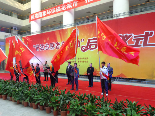 此次活動由泰安市委宣傳部、市司法局、團市委、市普法辦聯(lián)合舉辦,旨在進一步營造濃厚的法治氛圍,使廣大學(xué)生及民眾全面深刻理解憲法的基本原則和精神,充分認識社會主義制度的優(yōu)越性,進一步增強全體學(xué)生的憲法意識、公民意識、愛國意識、國家安全統(tǒng)一意識和民主法制意識。駐泰高校共計220人參加了啟動儀式,我院學(xué)生金博宏作為大學(xué)生志愿者代表接受了市領(lǐng)導(dǎo)的授旗。