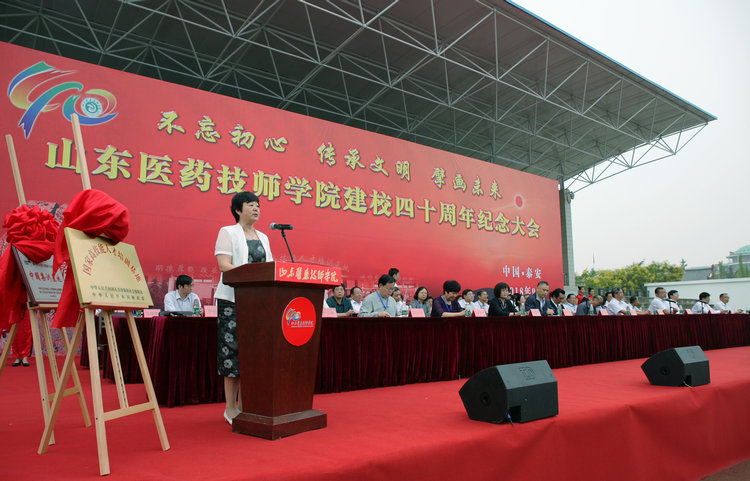 泰安市委常委、組織部長高尚山代表泰安市委市政府到會祝賀并講話。他說,多年來,泰安市堅持人才引領發展的戰略地位,把支持駐泰高校做大做強作為義不容辭的責任,按照“三方共建”協議精神,不斷加大對山東醫藥技師學院的支持力度,積極推動產教融合、校地合作、共贏發展。特別是今年,市委、市政府制定出臺人才新政“金十條”,建立校地合作聯席會議制度,以前所未有的力度推進人才強市戰略、推動校地合作縱深發展。希望山東醫藥技師學院以建校40周年為契機,不斷總結辦學經驗,創新辦學模式,加強內涵建設,深化工學結合、校地企合作,不斷提高教學質量和辦學水平,為泰安經濟社會發展培養輸送更多高質量的優秀技能人才。市委、市政府將一如既往地支持山東醫藥技師學院的發展,支持學院不斷改善辦學條件、提升辦學層次,與學院攜手,不斷開創校地優勢互補、合作共贏的新局面。