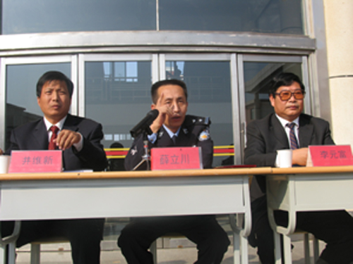 大會由黨委書記井維新主持。副院長李松濤宣讀了學院關于對違紀學生的處分決定。會上,學院正式聘請泰安市高新區公安局副局長薛立川同志為法制副院長,院長李元富同志為薛局長頒發了聘書。隨后,薛局長為同學們做了生動的法制報告,報告既深入淺出又通俗易懂,通過典型案例的分析,對學生觸動很大,使學生進一步認識到違法犯罪帶來的危害,使全校師生對違法犯罪的根源有了進一步的認識,提高了同學們學法、知法、守法的自覺性。