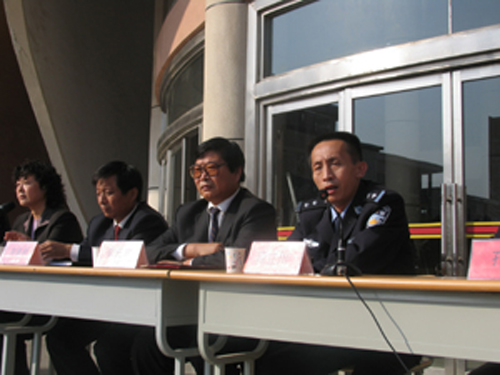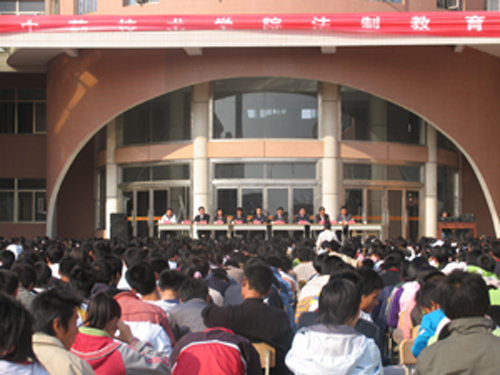 2006年10月26日下午,我院在中心廣場召開法制教育大會,邀請泰安市高新區公安局副局長薛立川同志來校作法制報告,泰西派出所所長孔軍民,學院領導李元富、井維新、李松濤、陳世偉、張兆江,學管處、保衛處、團委、各部系負責同志、班主任以及全體同學參加了大會。