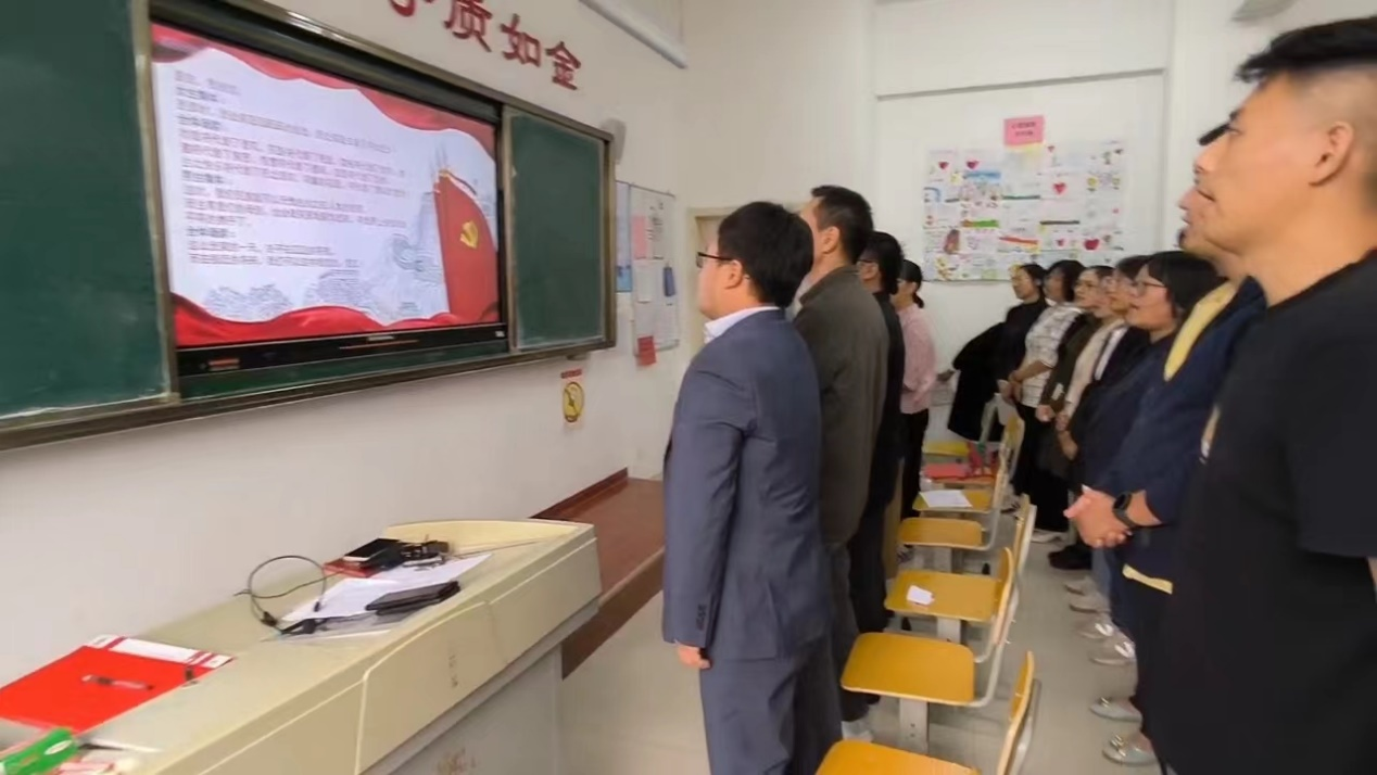 隨后,全體黨員團員起立,齊聲誦讀了《可愛的中國》,大家精神飽滿,聲音鏗鏘有力,嘹亮的誦讀聲在教學樓回蕩,師生們深情表達著對方志敏烈士愛國精神的崇敬與緬懷,也訴說著對偉大祖國的熱愛之情。