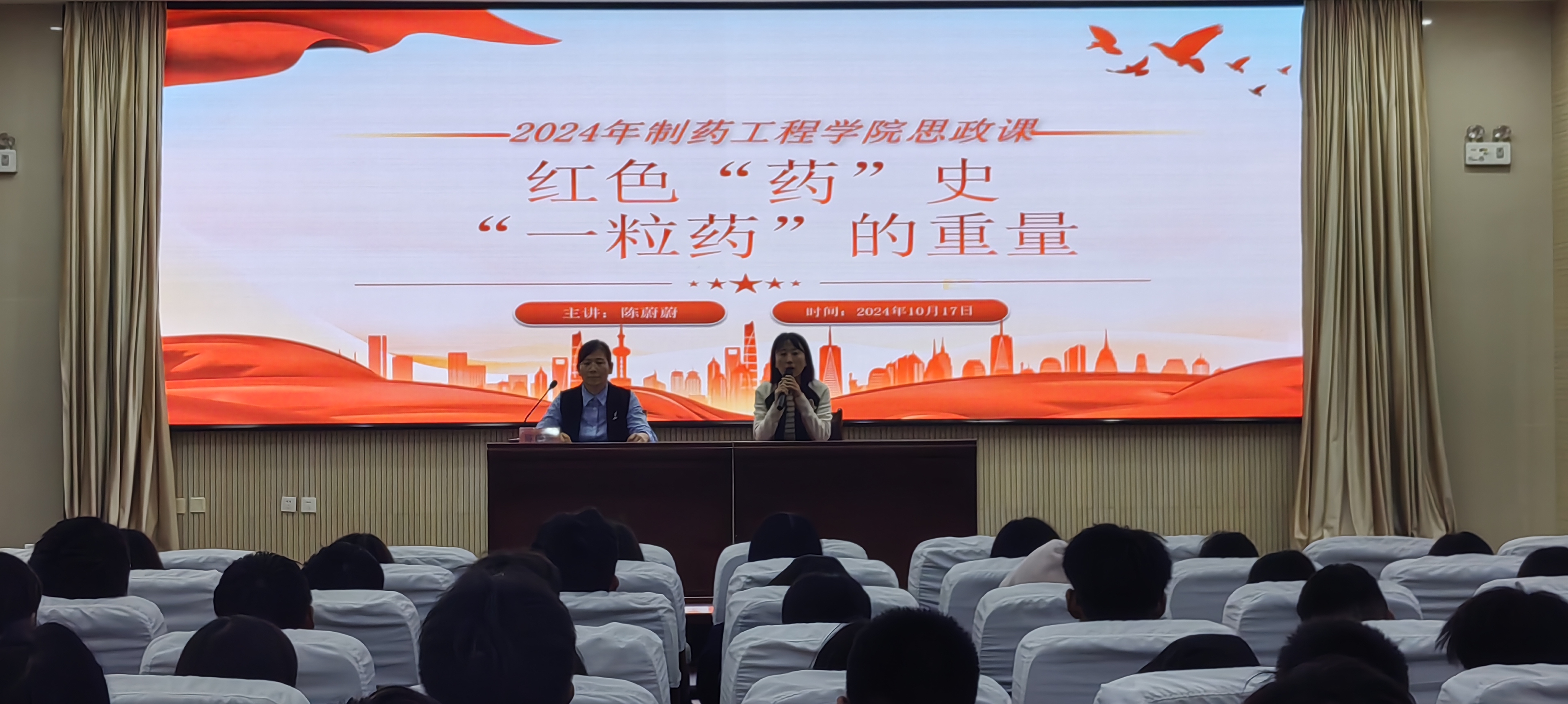 思政課是落實立德樹人根本任務的關鍵課程,也是提升思政引領力的重要渠道。10月17日下午,制藥工程學院院長陳蔚蔚,以“紅色藥史——一粒藥的重量”主題為校企合作訂單班學生帶來了一堂具有針對性和吸引力的思政課。