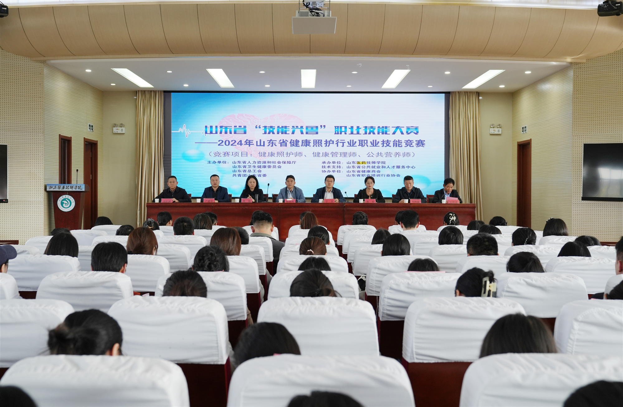 本次競賽為省級一類技能大賽,由山東省人力資源和社會保障廳、山東省衛(wèi)生健康委、山東省總工會、共青團山東省委主辦,山東醫(yī)藥技師學(xué)院承辦。全省50家單位137名選手在“公共營養(yǎng)師”“健康管理師”“健康照護師”三個項目中同臺競技。