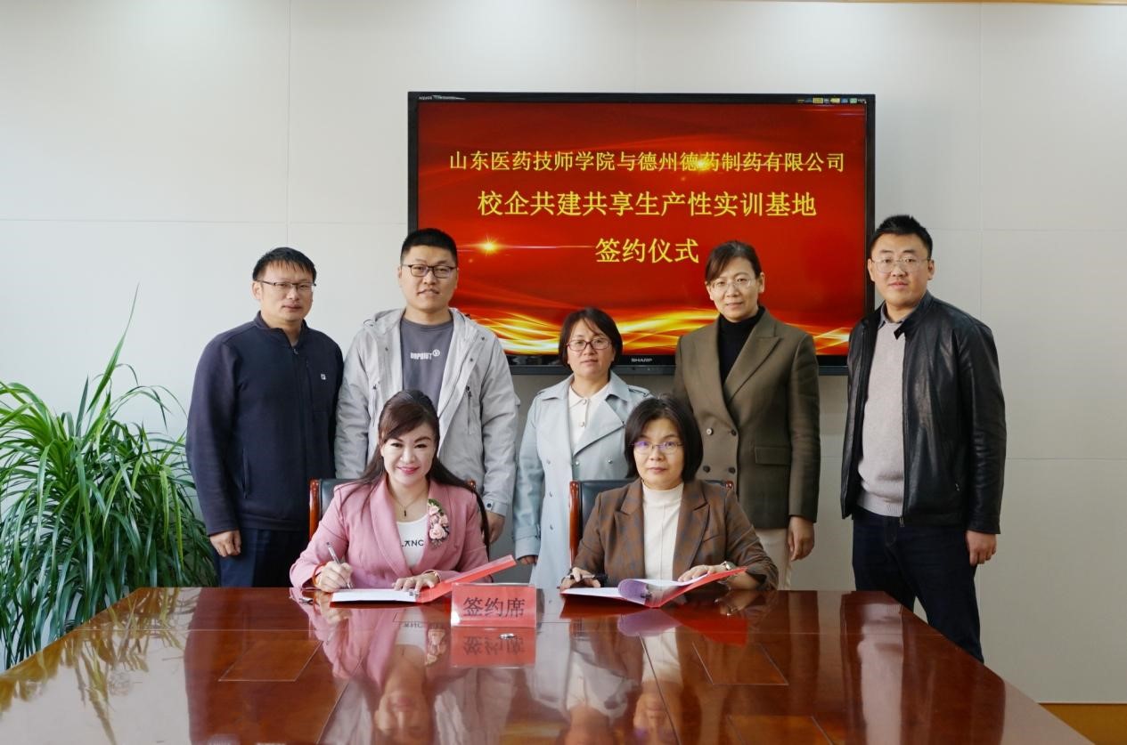 10月29日上午,學院與德州德藥制藥有限公司校企共建共享生產性實訓基地簽約儀式在辦公樓第三會議室舉行。學院黨委委員、組織人事處處長高立霞,德州德藥制藥有限公司人力資源副總經理陳妍松、副總經理助理董凱,招生就業辦公室、藥品商貿學院、制藥工程學院等相關負責人員參加活動。