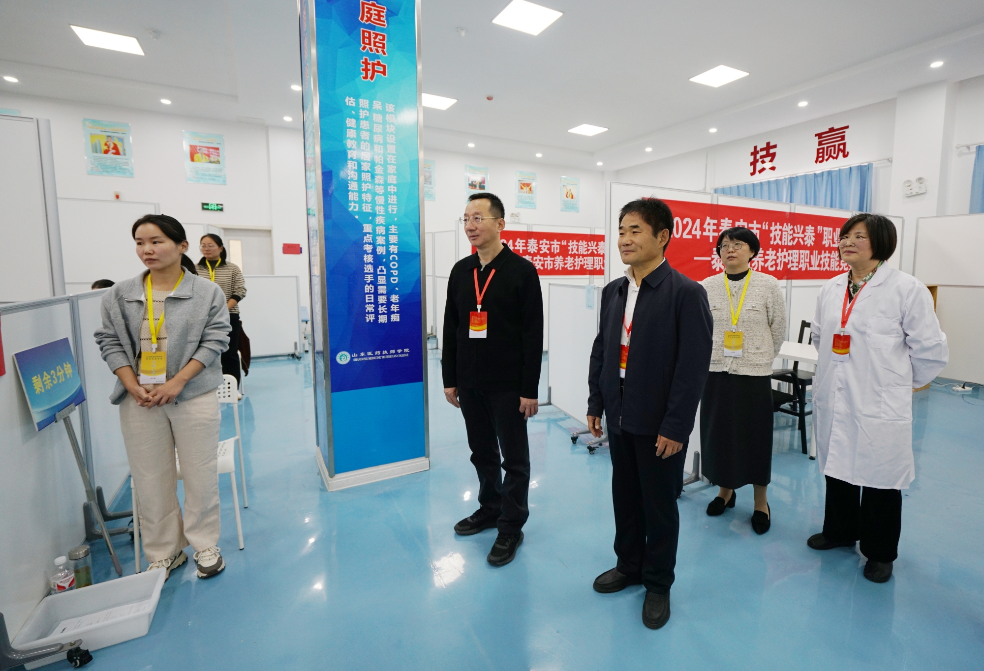 10月30日至11月1日,2024年泰安市“技能興泰”職業技能大賽——泰安市養老護理職業技能競賽在我院隆重舉辦。市民政局黨組成員、副局長董峰,市直機關工委委員、四級調研員王金壽,市總工會黨組成員、副主席陳長舉,團市委四級調研員王亞超,市婦聯黨組成員、副主席付望舒,市殘聯黨組成員、辦公室主任、四級調研員董衛,學院副院長匡照忠,市民政局養老服務指導中心黨支部書記、主任翟清鐸出席開幕式。開幕式由翟清鐸主持。