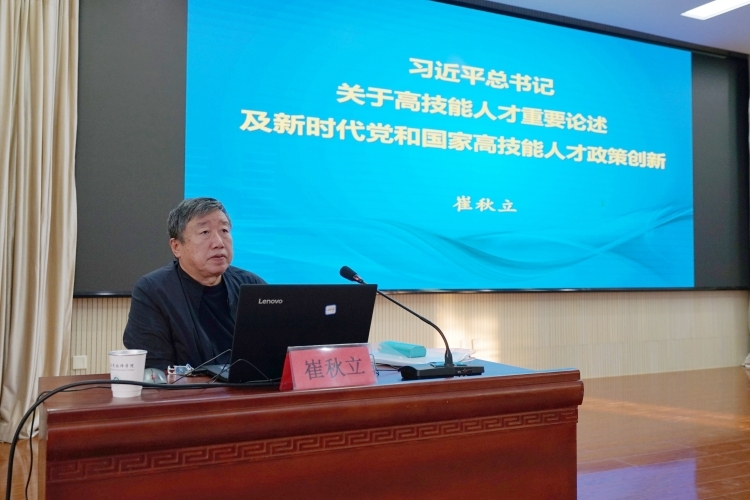 11月7日下午,學(xué)院在教學(xué)B樓四樓會(huì)議室舉辦《習(xí)近平總書(shū)記關(guān)于高技能人才重要論述及新時(shí)代黨和國(guó)家高技能人才政策創(chuàng)新》專題輔導(dǎo)講座,特邀中國(guó)職工教育和職業(yè)培訓(xùn)協(xié)會(huì)副會(huì)長(zhǎng)、人社部職業(yè)培訓(xùn)專家、山東勞動(dòng)職業(yè)技術(shù)學(xué)院原黨委書(shū)記崔秋立作專題輔導(dǎo)。學(xué)院領(lǐng)導(dǎo)李啟國(guó)、龍躍洲、劉建升、匡照忠,全體教職工參加講座。講座由黨委書(shū)記李啟國(guó)主持。