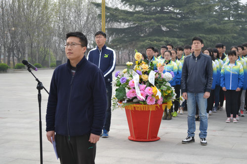 本次活動由學工部部長、團委書記黃鵬帶隊,各系團總支書記、學生代表等共40余人參加。上午9時,全體人員有序到達了全國愛國主義教育基地、山東國防教育基地泰安市革命烈士陵園。主持人向烈士紀念碑行鞠躬禮,宣布儀式開始。在烈士紀念碑前,全體人員嚴肅認真地唱響中華人民共和國國歌,隨后在場所有師生莊重肅穆的為烈士默哀3分鐘,接著全體人員面對莊嚴的團旗,重溫入團誓詞,激昂的誓言在革命烈士紀念碑前回蕩,洪亮的聲音告慰了先烈的英靈,表達了在場青年師生們“學習總書記講話