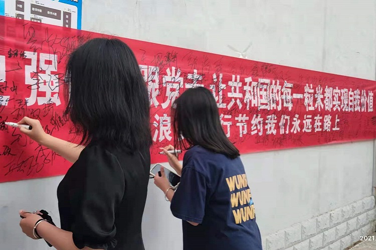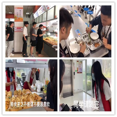 第二,拒絕“舌尖上的浪費”——發出一份行動倡議。6月初,學院向全體學生發出倡議,堅決對“舌尖上的浪費”說不。倡導同學們從小事做起,與文明握手,向陋習告別,做尊重勞動、勤儉節約的行動派,在弘揚真善美中傳遞青春正能量。