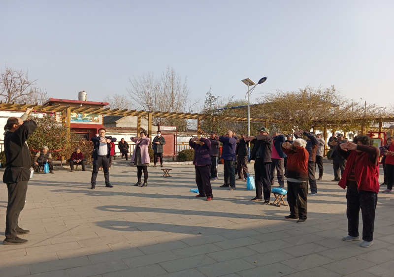 我院體育教師程剛、劉俊秀現場為村民們進行了八段錦健身氣功基本要領詳細講解和示范,老師們柔和緩慢的動作,圓活連貫的姿勢引導著村民們投入到專注的練習中,得到了參觀群眾的一致好評。岳莊村村主任楊亮說:“八段錦表演,既是一種文化生活的享受,更是全民健身的有效形式,深得村民的喜歡。感謝貴院深入岳莊村向廣大群眾教授八段錦中醫養生操!逼陂g,學院將精心編制和準備的養生小冊子、保溫杯發給了村民,希望村民們更加積極的參與健身、科學健身,提高科學健身意識。