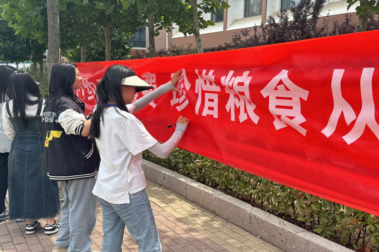 隨后,各院系學(xué)生干部將“厲行節(jié)約 反對(duì)浪費(fèi)”寶貴精神分享給周邊的同學(xué),大家紛紛表示認(rèn)同,并在宣傳橫幅上鄭重地簽下了自己的名字,表達(dá)了要時(shí)刻樹立“勤儉節(jié)約”良好新風(fēng)尚的決心。