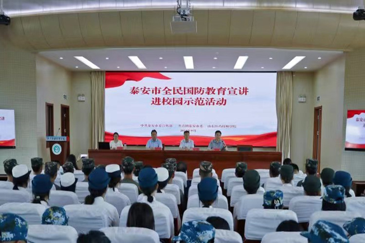 9月14日下午,由團市委聯(lián)合市委宣傳部、山東醫(yī)藥技師學(xué)院共同舉辦的泰安市全民國防教育宣講進校園示范活動在我院順利開展。活動以宣講的形式強化青年學(xué)子國防觀念和意識,提高國防教育感召力和有效性。活動由團市委副書記肖順利主持,學(xué)院黨委委員、副院長楊挺致辭,市宣傳部宣教科科長張燦勇、市委黨校國防教育金牌講師陳鳳婷、團市委學(xué)少部負責(zé)人尹叢叢,學(xué)院學(xué)生工作部部長、團委書記李斐斐出席活動。學(xué)院各院系負責(zé)人、團總支書記、部分學(xué)生代表,共計390余人參加活動。