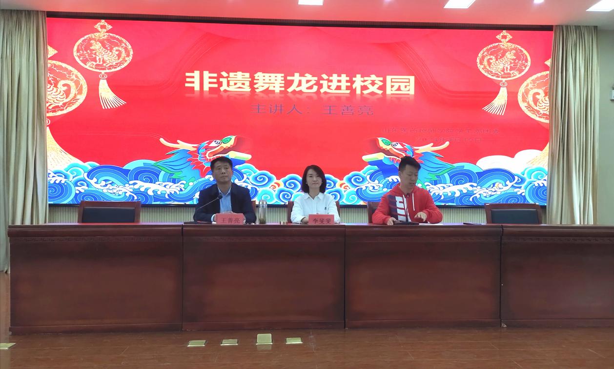 為更好地傳承和保護非物質文化遺產,繼承中華優秀傳統文化,弘揚優秀傳統技藝,4月10日下午,非遺舞龍傳承人王善亮先生來我院講座,學生工作部部長李斐斐出席活動,各院系學生代表三百余人參加本次活動。、