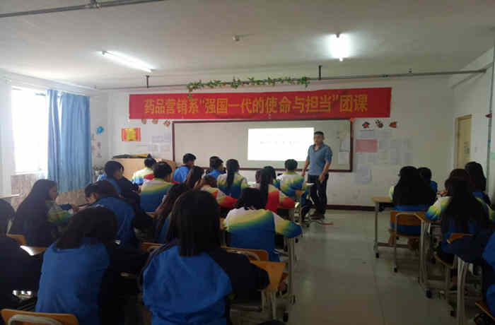 2018年5月24日下午2點,藥品營銷系團總支部在609教室開展“強國一代的使命與擔當”團課活動。系入黨積極分子、各年級學生干部以及各團支部團員代表參與此次團課活動,此次活動由我系團總支部委員劉群,李娟老師共同主持進行。