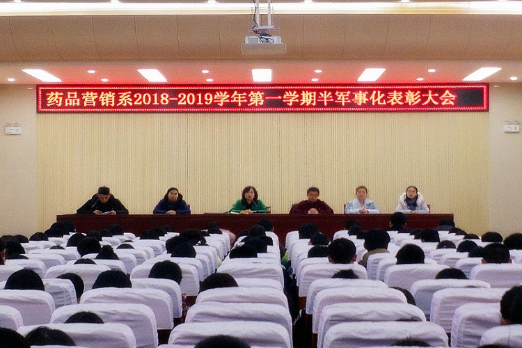 12月25日下午,藥品營(yíng)銷系在學(xué)院B樓會(huì)議室召開了2018-2019學(xué)年第一學(xué)期半軍事化表彰總結(jié)大會(huì),系主任張晶、副主任王玉靜、張建巍參加會(huì)議,會(huì)議由系團(tuán)總支書記劉群主持,藥品營(yíng)銷系41個(gè)行政班級(jí),260多位排長(zhǎng)參加本次總結(jié)大會(huì)。