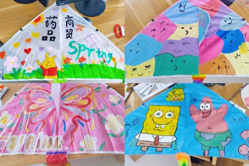 清明假期之前,學生們利用課余時間進行圖案設計,將紙鳶與繪畫結合,巧妙繪制著各式各樣的圖案,仿佛在賦予這些紙鳶以生命。