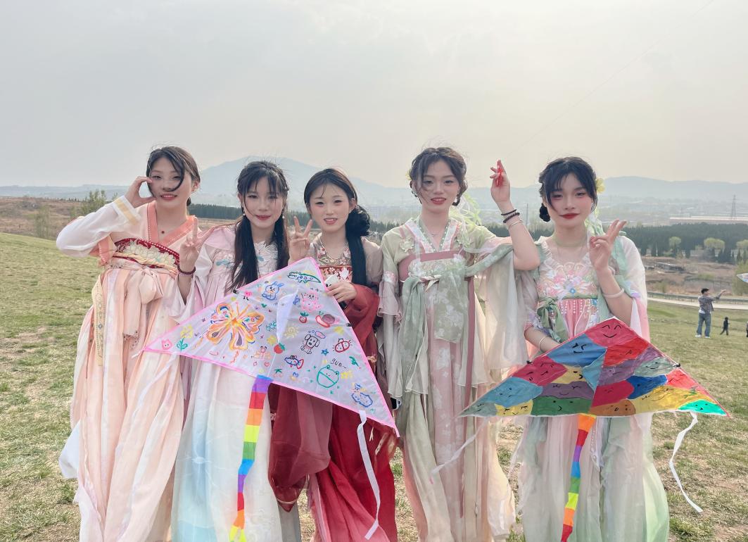 陽光正好,天空湛藍如洗。4月8日下午課余時間,班主任帶隊,學生們手持精心繪制的紙鳶,身著中國傳統服飾,共同來到了泰安市粥頂山體育公園開展了“上春山 放紙鳶”春日踏青活動。